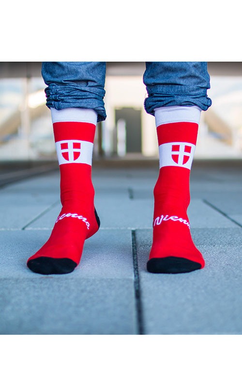Originelle Socken mit Wien Motiv. Auf der Socke finden Sie die Stadt Vienna.